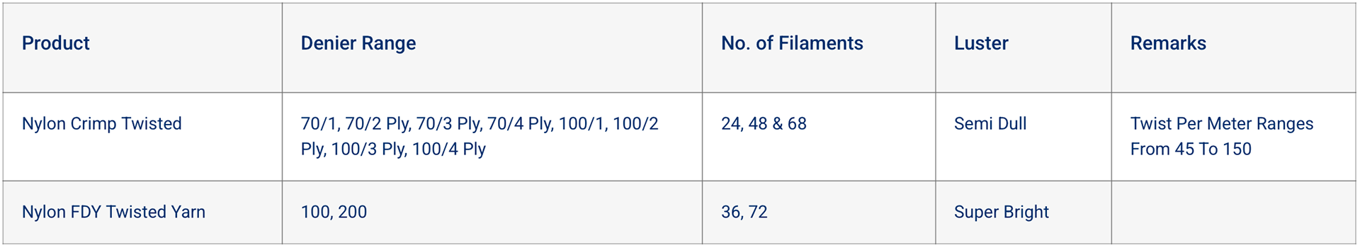 NYLON DYED YARN RANGE